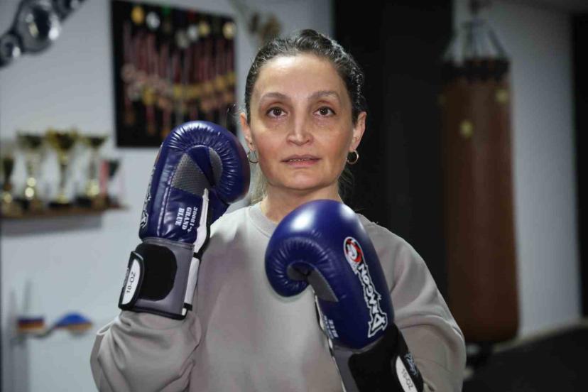 47 yaşındaki hemşire anne çocuklarıyla birlikte eldiven giyip ringe çıktı