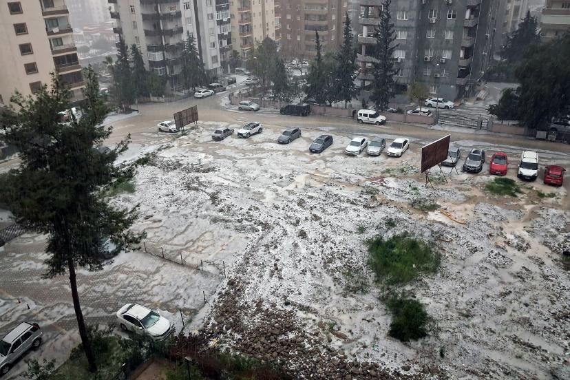 Adana’da sağanak ve dolu nedeniyle, cadde ve sokaklar beyaza büründü