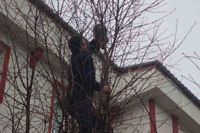 Ağaçta mahsur kalan kediye zabıtadan kurtarma operasyonu