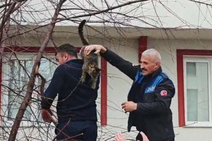 İhbar üzerine olay yerine gelen zabıta ekipleri, ağaca tırmanarak yaklaşık 2 saat boyunca mahsur kalan kediye ulaştı. Zabıta görevlisinin omzuna çıkan kedinin bu anları çevrede bulunan vatandaşların yüreğini ısıttı. Dikkatli bir şekilde aşağı indirilen kedi, sahibine teslim edilirken, kedinin sahipleri de zabıta ekiplerine yardımlarından dolayı teşekkür etti. Olay, çevredeki vatandaşlar tarafından takdirle karşılandı.