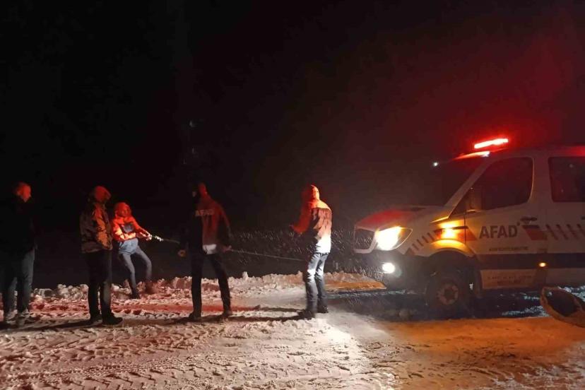 Ağrı’da tipi nedeniyle şarampole kayan araçtaki 2’si çocuk 4 kişi kurtarıldı
