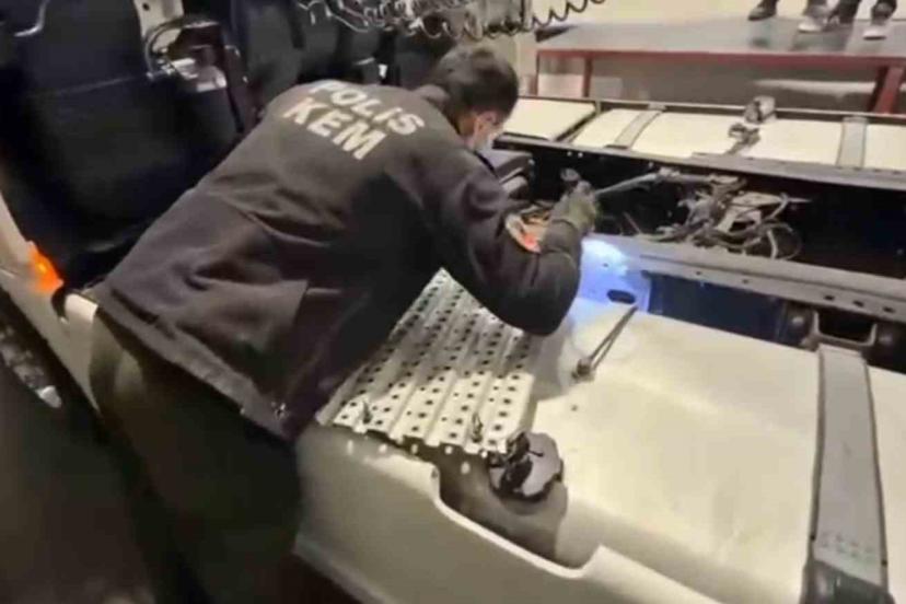 Ekiplerce takibe alınan çekici ve dorsesinde yapılan aramada, 2 paket halinde toplam 1 kilo 220 gram skunk maddesi bulundu.