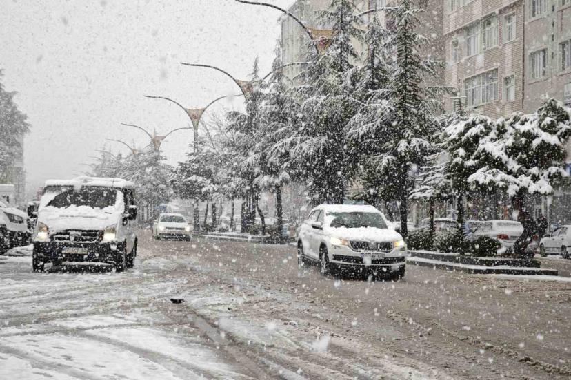 Bitlis’in Ahlat ilçesinde nisan ayında kar yağışı etkili oluyor.