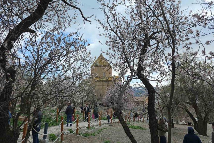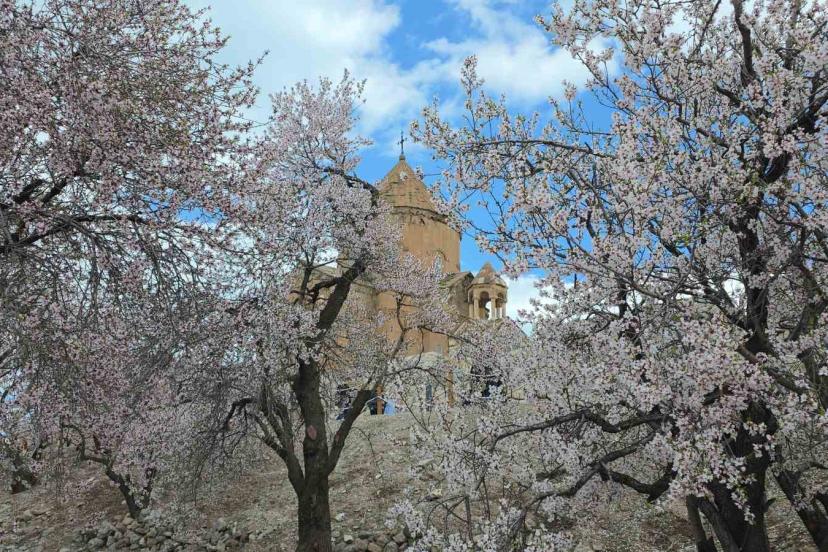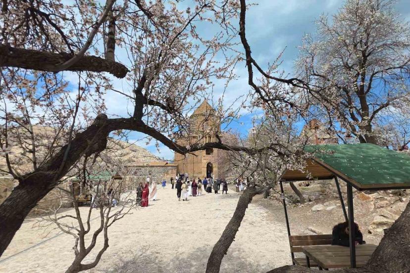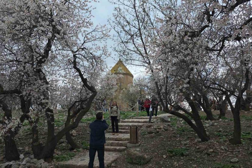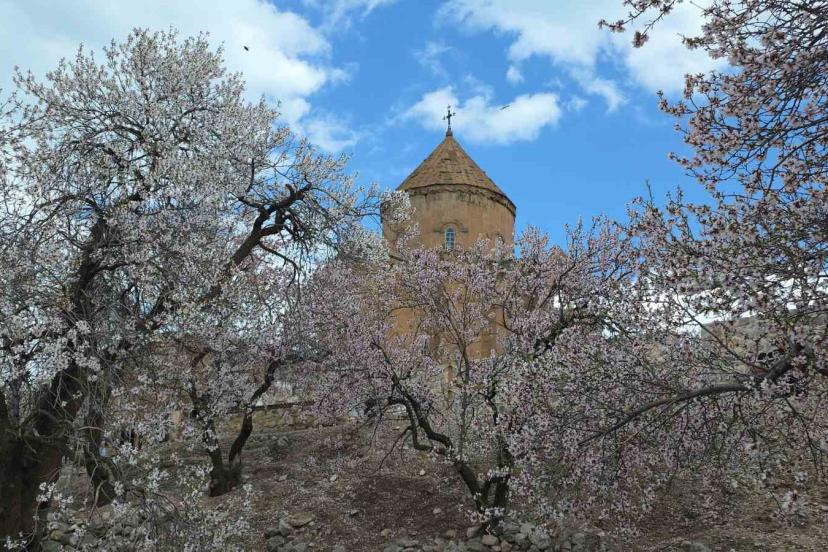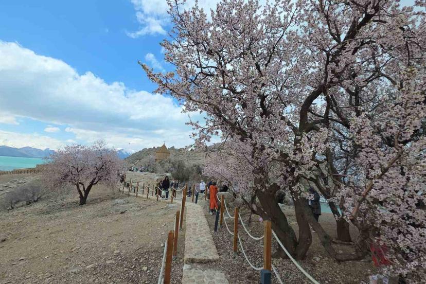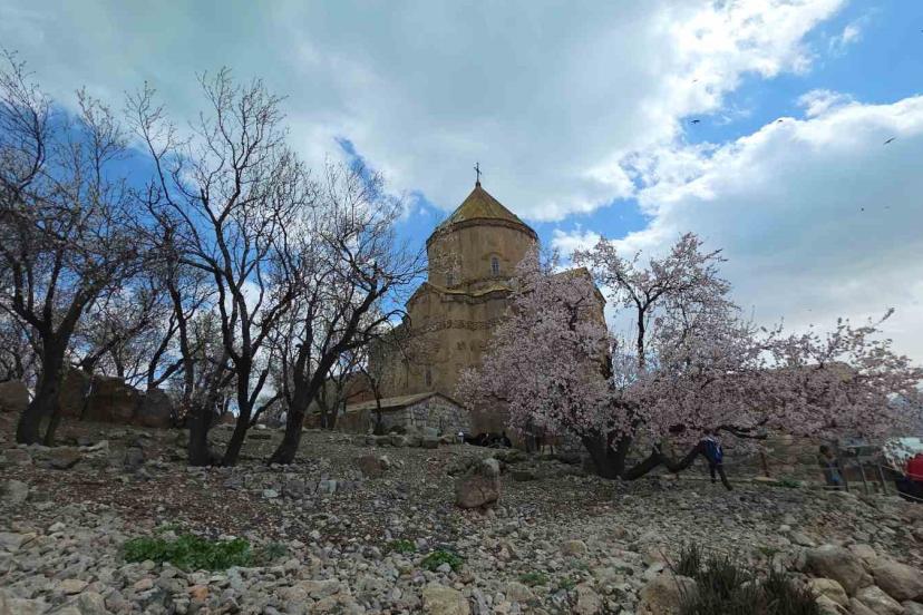 ?Baharın gelişiyle birlikte çiçek açan badem ağaçları, tarihi Akdamar Kilisesi’nin taş oymalarıyla birleşerek kartpostallık görüntüler oluşturdu. Van Gölü’nün turkuaz mavisi ve Artos Dağı’nın karlı zirveleriyle birleşen bu görsel şölen, fotoğraf tutkunları için adeta bir doğal stüdyo görevi görüyor.