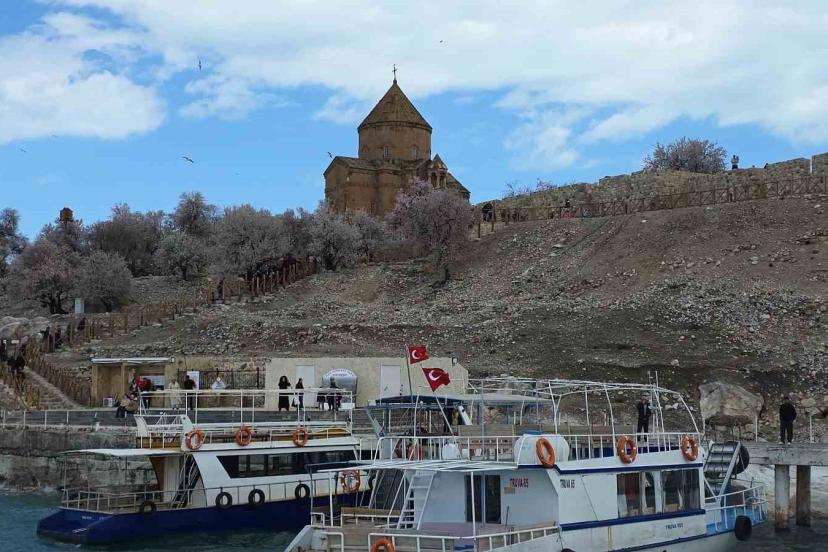 Van Gölü’nün incisi Akdamar Adası, 23 Nisan Ulusal Egemenlik ve Çocuk Bayramı’nda tarihinin en yoğun günlerinden birini yaşıyor. Resmi tatili fırsat bilen binlerce vatandaş ve turist, pembe ile beyaza bürünen badem ağaçlarının eşsiz manzarası eşliğinde adaya akın etti.