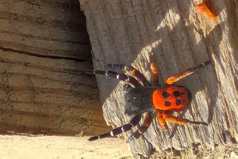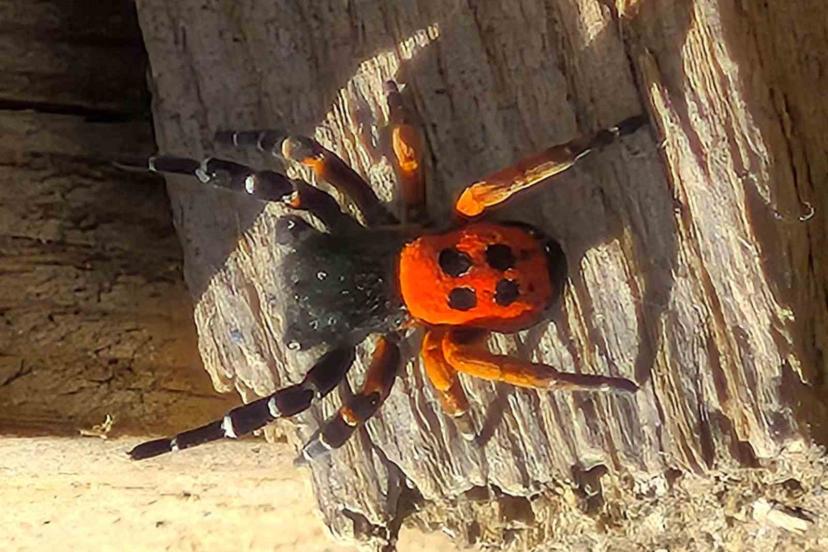 Elazığ’ın Yalındamlar köyünde kuru ve taşlık bir alanda ağaç kabuğu üzerinde, Akdeniz ve Orta Asya’ya özgü nadir türlerden "Uğurböceği Örümceği" (Eresus cinnaberinus) görüntülendi.