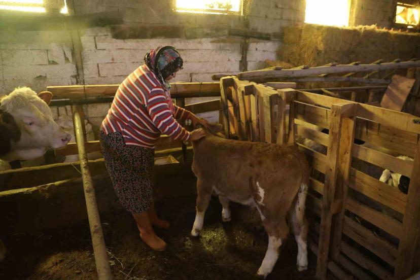 Elazığ’da Cömert ailesi, annesinin doğum esnasında öldüğü buzağıyı kendi çocuklarından ayırt etmeyerek kendi elleriyle özenle besliyor.