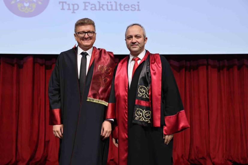 Tıp Fakültesinin sağlık hizmeti sunumu, nitelikli hekim yetiştirilmesi ve bilimsel araştırmalar alanında önemli başarılara imza attığını belirten Hacımüftüoğlu, öğretim üyelerinin özverili çalışmaları ve öğrencilerin yüksek motivasyonu sayesinde üniversitenin sağlık bilimlerinde her geçen gün daha ileri bir noktaya ulaştığını ifade etti. Konuşmasında akademik unvan alan öğretim üyelerini de tebrik eden Hacımüftüoğlu, yeni unvanlarının hayırlı olması temennisinde bulundu.
