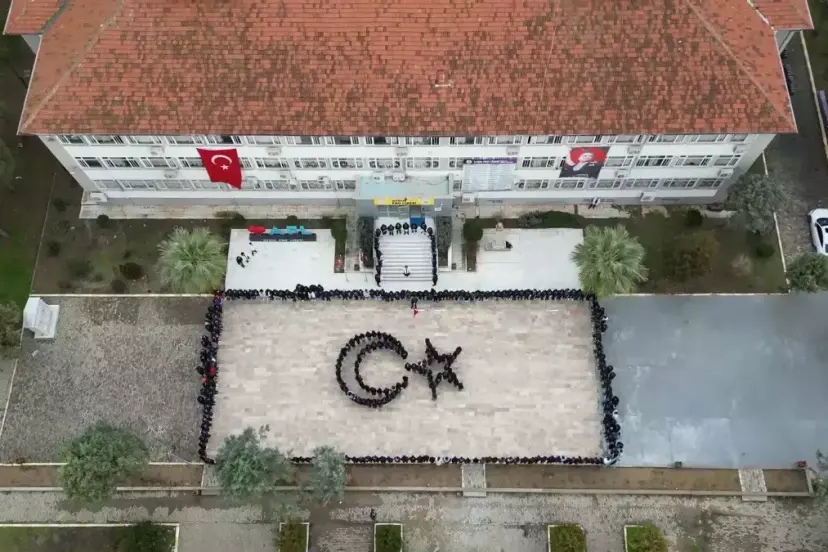 Aydın Fen Lisesi öğrencileri ve öğretmenleri, 'Bayrakla Başlayan Okul, Birlikle Büyüyen Gelecek' temasıyla okul bahçesinde bedenleriyle Türk bayrağı figürü oluşturarak, İstiklal Marşı'nı okudu. Etkinlikle milli bilinç ve vatan sevgisinin pekiştirilmesi hedefleniyor.