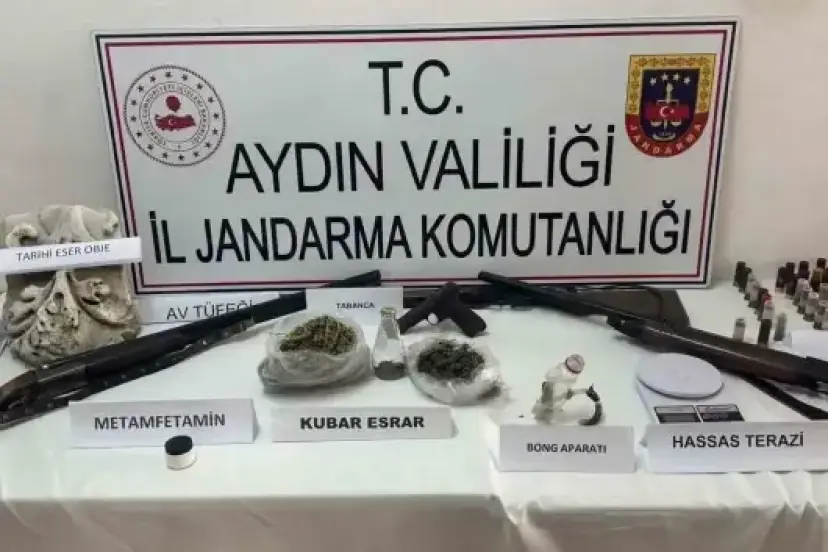 Yapılan aramalarda 498 gram kubar esrar, 3 gram metamfetamin, dijital hassas terazi, 1 adet ruhsatsız tabanca, 16 adet fişek, 3 adet ruhsatsız av tüfeği, 29 adet av tüfeği fişeği, Roma dönemine ait tarihi obje, 1 adet cep telefonu, uyuşturucu kullanma aparatı ele geçirildi. Olayla ilgili olarak şüpheli şahıs gözaltına alınırken, hakkında adli işlem başlatıldı.