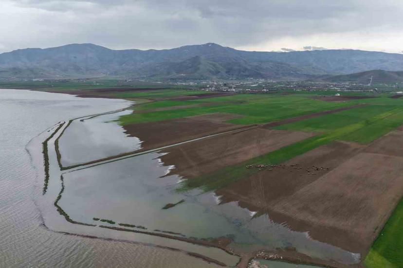 Elazığ’da 2019 yılında kuraklık nedeniyle 4 kilometre geri çekilen Keban Baraj Gölü suları, 2026’da yaşanan aşırı yağışlarla dolarak 150 metre ileri geldi. Baraj sahasına ekilen ürünler sular altında kalırken, 7 yıl arayla aynı noktadan çekilen görüntüler, değişimi gözler önüne serdi.