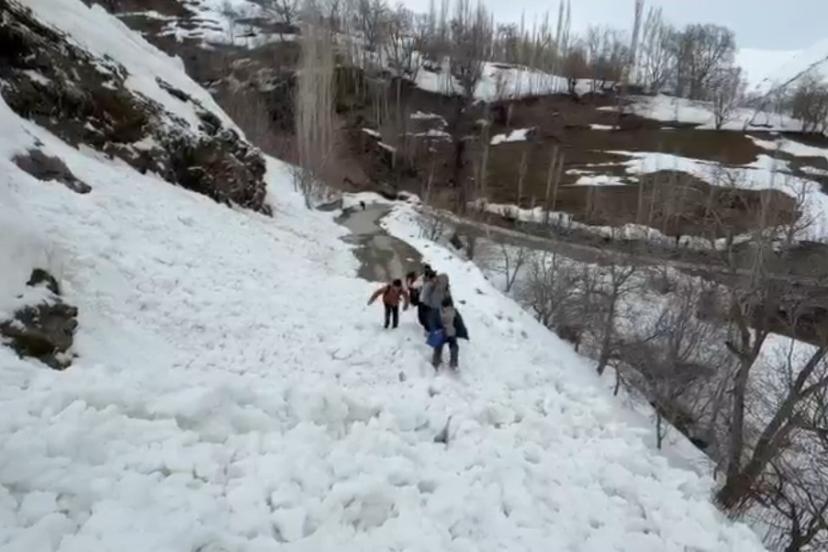 Bahçesaray’da, etkili olan yoğun kar yağışının ardından Çatbayır Mahallesi yoluna çığ düştü.
