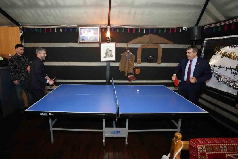 Milli Eğitim Bakanı Yusuf Tekin, gündüz "Maarifin Kalbinde Ramazan Şenlikleri" kapsamında çocuklarla bir araya gelirken, iftar sonrası gençlerle buluştu. Havuzbaşı Kent Meydanı’ndan kurulan "AK Gençlik Ramazan Çadırı" iftar sonrası renkli görüntülere sahne oldu. Erzurum’daki yoğun programlarının ardından iftar sonrası gençlerin Ramazan çadırına konuk olan Milli Eğitim Bakanı Yusuf Tekin, onlarla sohbet etti. AK Parti İl Başkanı İbrahim Küçükoğlu ile masa tenisi maçı yapan Bakan Tekin, gençlerle langırt oynadı.