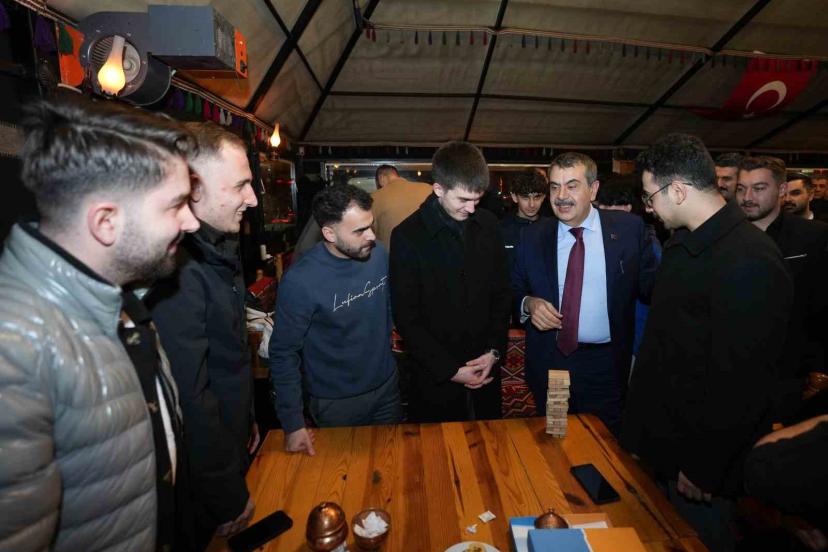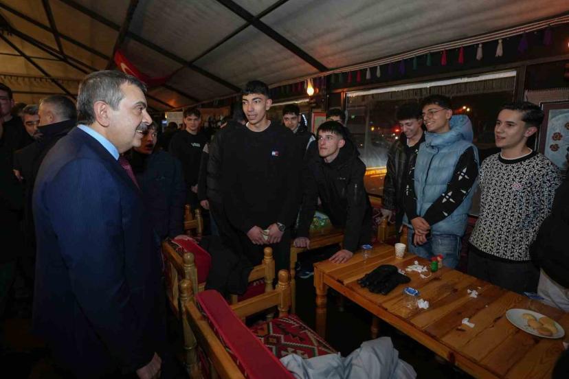 Milli Eğitim Bakanı Yusuf Tekin, Erzurum programı çerçevesinde, kent merkezinde kurulan çadırda gençlerle buluştu.