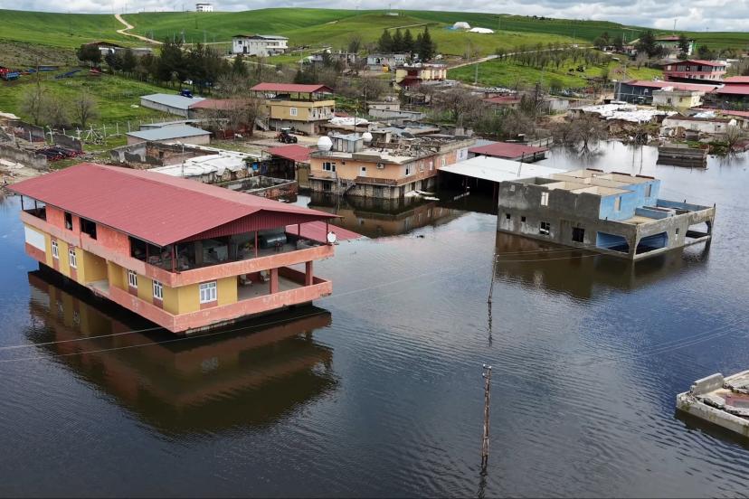 Diyarbakır'ın Kocaköy ilçesinde etkili olan yağışlar sonrası su seviyesi yükselen Ambar Barajı’nın kapaklarının açılmasıyla su, kırsal Şerifoğulları Mahallesi'ne ulaştı. Daha önce boşaltılan ve su altında kalan 10 ev, dronla görüntülendi.