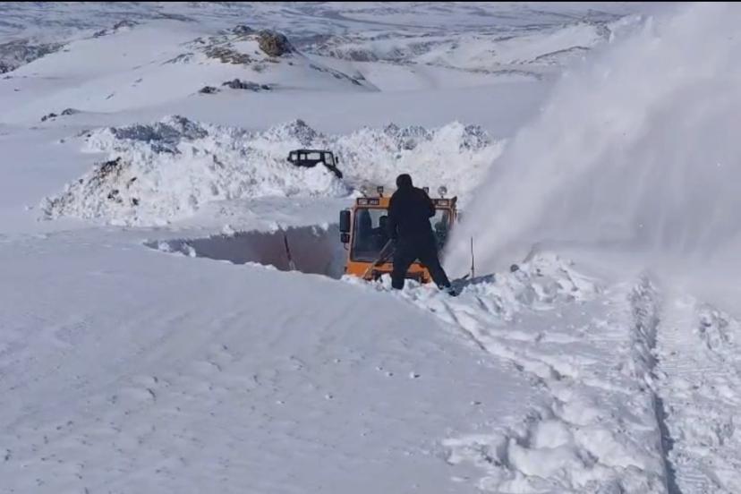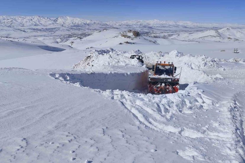 Van’ın Başkale ilçesinde yer yer 3 metreyi bulan kar tünellerinde ekiplerin yol açma çalışmaları devam ediyor.