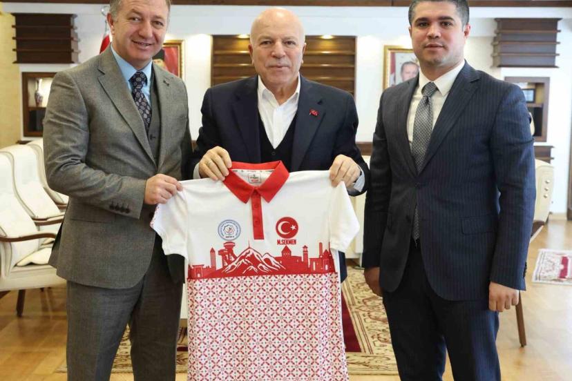 Erzurum Gençlik ve Spor İl Müdürü Levent Çakmur ile Spor Hizmetleri Müdürü Erdoğan Dönmez, Büyükşehir Belediye Başkanı Mehmet...