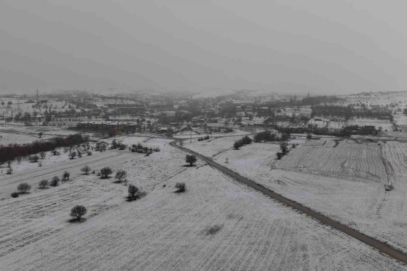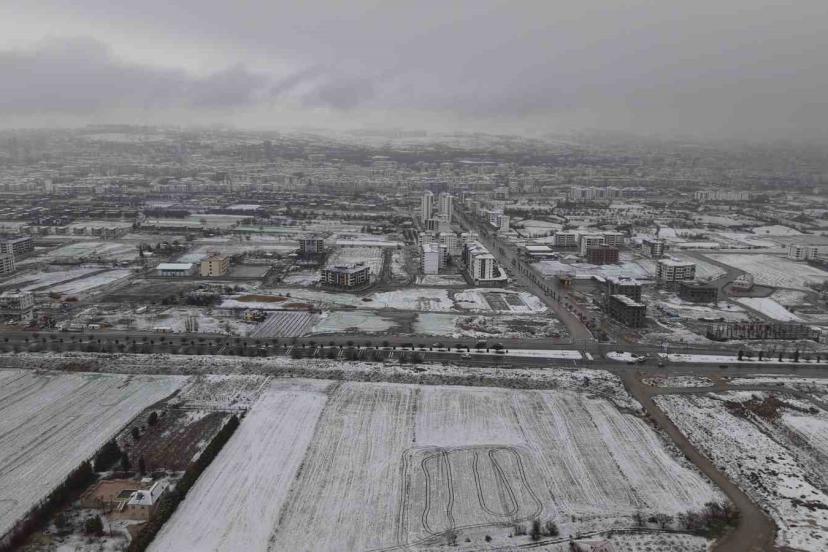 Elazığ’da sabah saatlerinde başlayan yoğun kar yağışı şehri beyaza bürüdü. Meteoroloji 13. Bölge Müdürlüğü’nün uyarılarının ardından etkili olan kar yağışı sonrası oluşan manzara havadan görüntülendi. Kar yağışıyla birlikte binaların çatıları, parklar ve yollar tamamen karla kaplandı. Görüş mesafesinin yer yer düştüğü kent merkezinde yağışın aralıklarla devam etmesi bekleniyor.