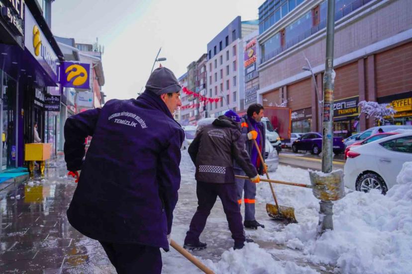 Yoğun kar yağışı sonrası harekete geçen Erzurum Büyükşehir Belediyesi’ne bağlı Kar Timleri, ulaşımda herhangi bir sıkıntının yaşanmaması için kentte karla mücadele çalışmasına başladı.