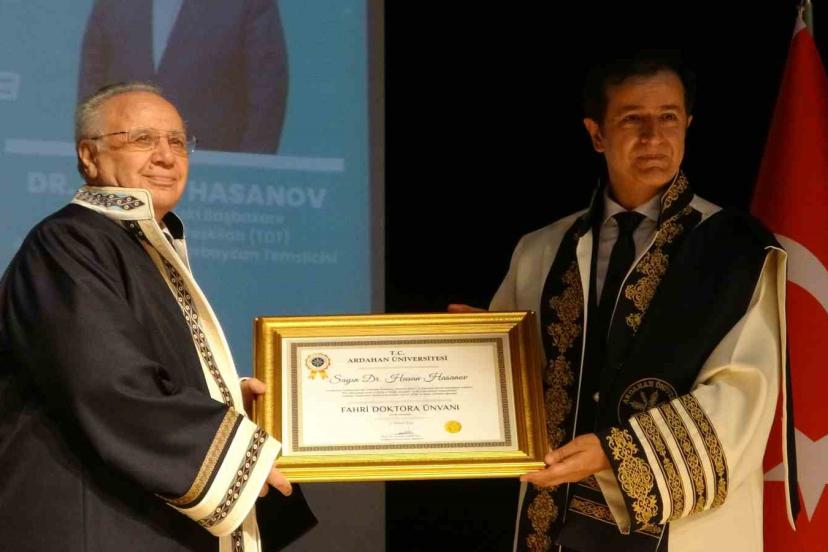 Ardahan Üniversitesi tarafından, Türk Devletleri Teşkilatı Aksakallar Konseyi Başkanı Binali Yıldırım ve Ak Sakallar konseyi Azerbaycan temsilcisi Dr. Hasan Hasanov’a fahri doktora ünvanı verildi.