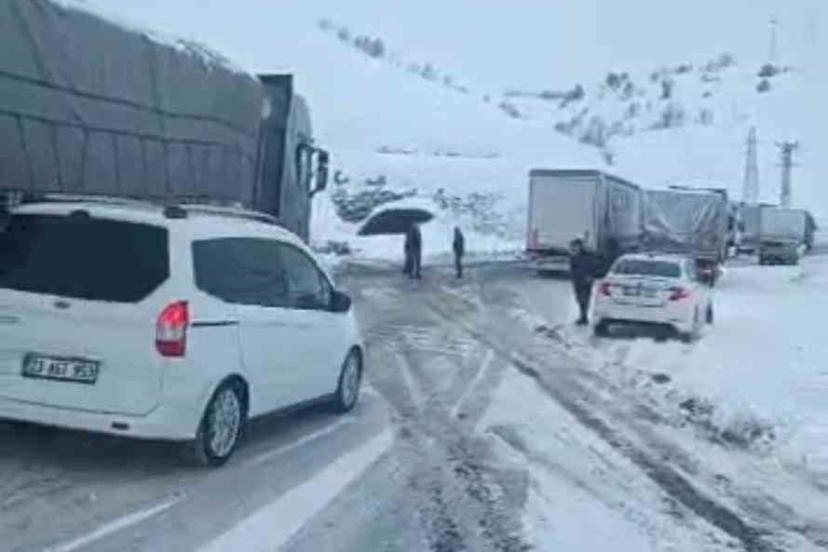 Bingöl-Erzurum kara yolunun yüksek kesimlerinde etkili olan kar yağışı ve buzlanma nedeniyle uzun araç kuyrukları oluştu.