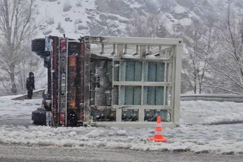 Kaza, Bingöl- Karlıova karakolu Elmalı köyü yakınlarında meydana geldi. Edinilen bilgiye göre, ilçeye doğal gaz sevkiyatı yapan 34 NSF 020 plakalı tır, yoğun kar yağışı nedeniyle yoldan çıkarak devrildi. Kazada, sürücü hafif yaralandı. Kısa süreliği paniğin yaşandığı kazada, haber verilmesi üzerine olay yerine sağlık, polis ve jandarma ekipleri sevk edildi. Hafif yaralanan sürücüye ilk müdahale olay yerinde yapıldı. Yaralı sürücü, tedbir amaçlı olarak ambulansla Bingöl Devlet Hastanesi’ne kaldırıldı.