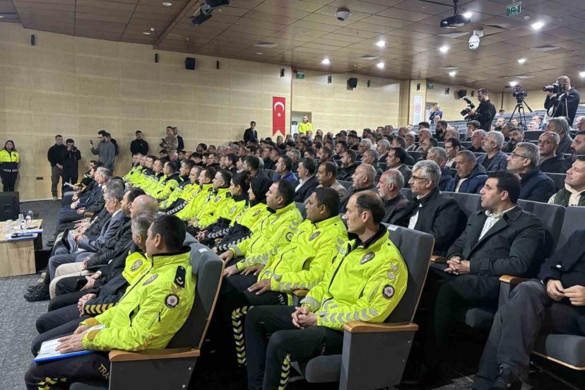 Toplantıda daha sonra İl Emniyet Müdürlüğü ve İl Jandarma Komutanlığı personeli tarafından yeni trafik kuralları ve cezai yaptırımlara ilişkin sunum yapıldı.