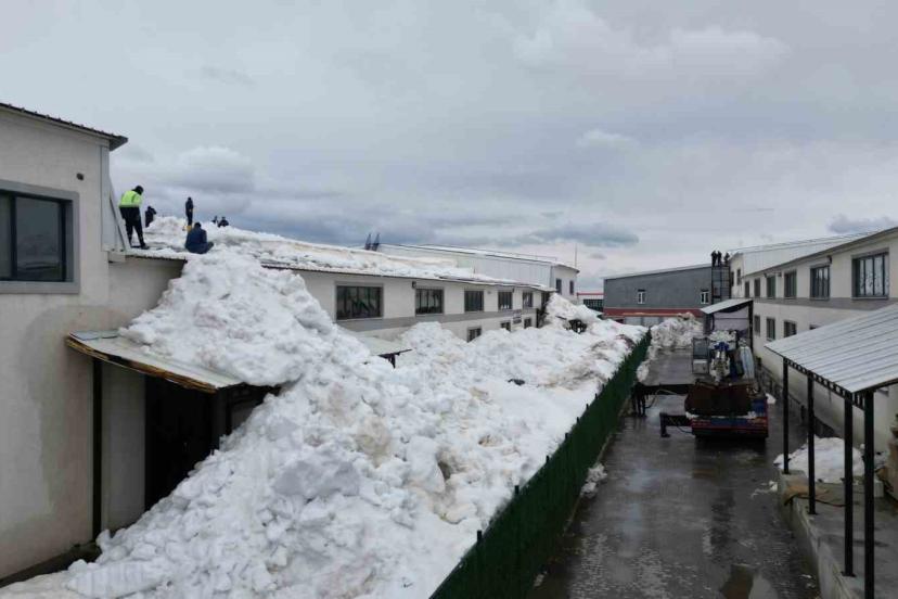 Bitlis OSB’deki çatıda kar yüküne karşı vinçli çözüm