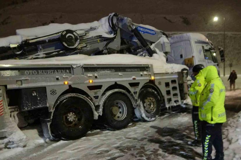 Edinilen bilgilere göre, kar ve buzlanmanın etkili olduğu Bitlis-Baykan karayolunda seyir halinde olan tır, virajı dönmeye çalıştığı sırada kontrolden çıkarak yol üzerinde yan döndü. Olayın ardından bölgeye yardım için çağrılan çekici ise karla kaplı zeminde ilerlemekte zorlanarak kara saplandı. Kısa sürede olay yerine gelen trafik ekipleri, hem yan dönen tırı hem de kara saplanan çekiciyi kurtarmak için çalışma başlattı.