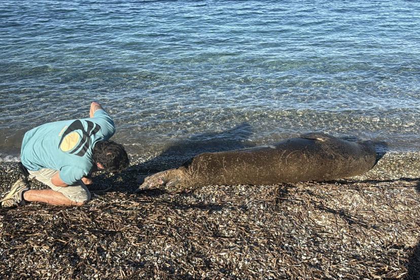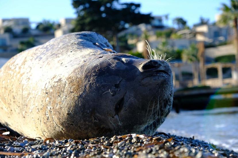 MUĞLA'nın Bodrum ilçesinde, sabah saatlerinde kıyıya gelen yetişkin bir Akdeniz foku, sahilde saatlerce uyuyup dinlendi. O anlar doğa fotoğrafçıları tarafından görüntülendi.