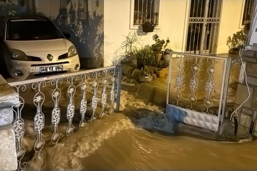 ÇOK SAYIDA EV VE İŞ YERİNİ SU BASTI Ekiplerin yoğun uğraşları sonrası Konacık- Bitez arasında sel suları nedeniyle kapanan yol yeniden trafiğe açıldı.