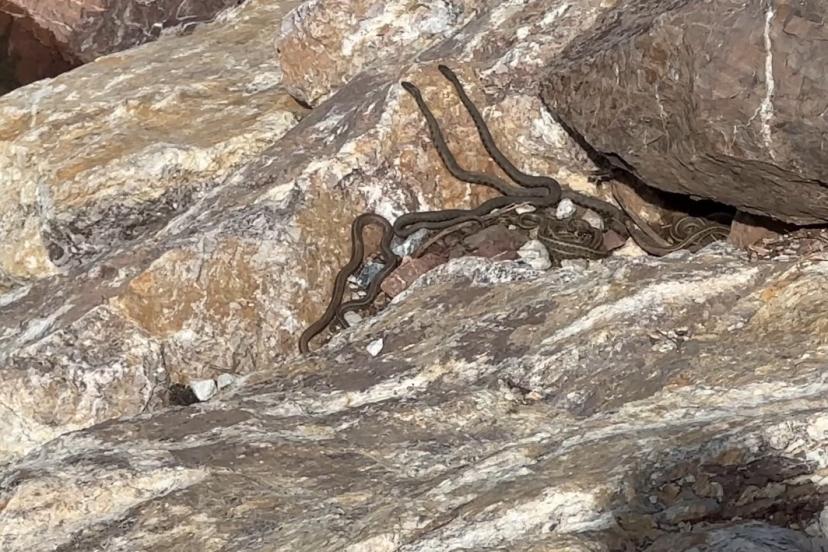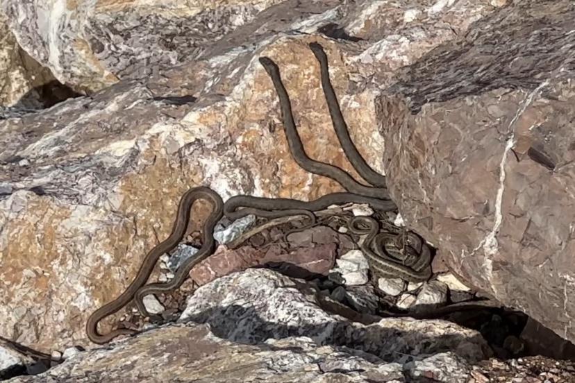 Hakkari’nin Yüksekova ilçe merkezine 20 kilometre uzaklıkta bulunan ‘Yılan Pınarı’ bölgesinde sürü halinde güneşlenen yılanla...