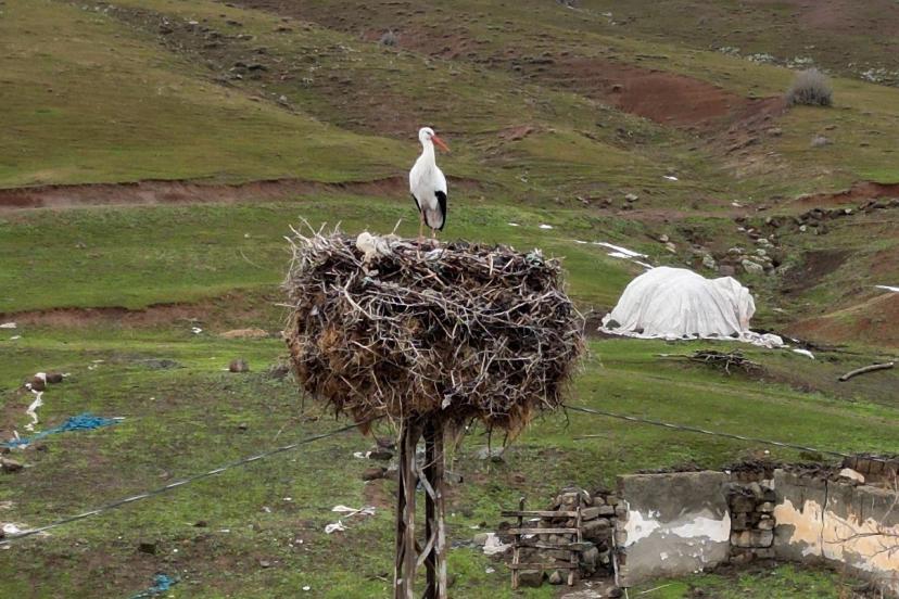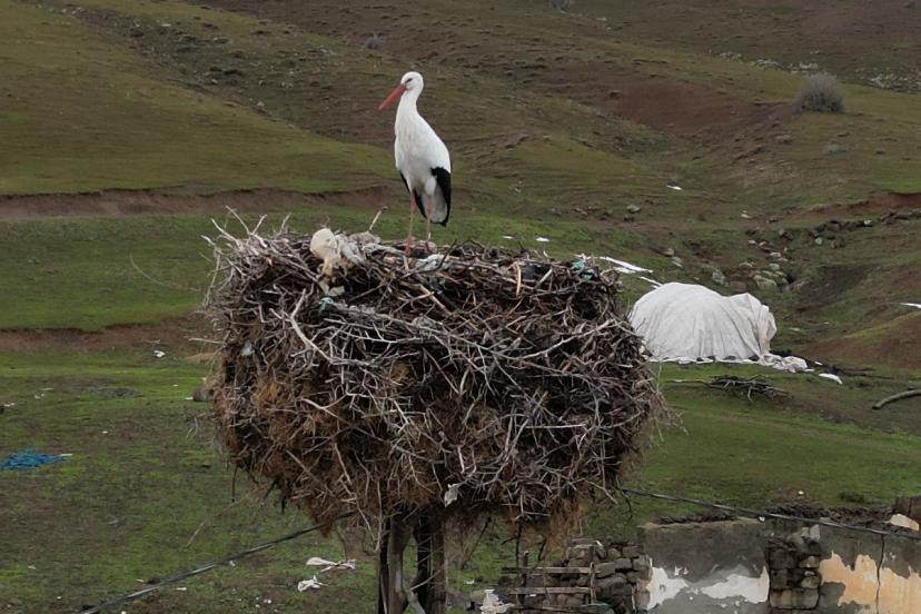Bitlis’in Güroymak ilçesine bağlı Budaklı köyünde bulunan bir leylek, yıllardır göç etmeyerek aynı yuvada kalmaya devam ediyor.