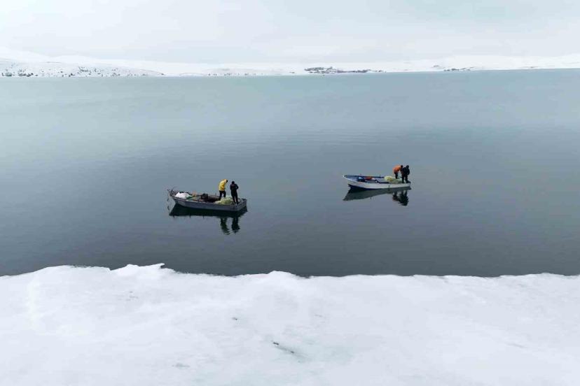 Dilburnu köyünde balıkçılık yapan Bayram Can, "Gölün buzları açıldı. Avcı olarak teknelerimizi göle açtık. Balık avlıyoruz. Geçimimizi balık avlayarak sağlıyoruz" dedi.