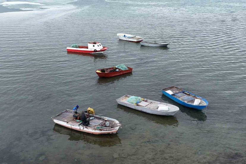 Buzların çözülmeye başladığı Nazik Gölü’nde balıkçı tekneleri yeniden suya indi