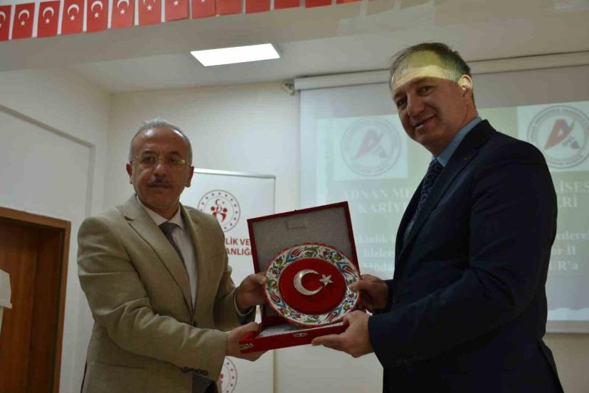 Program sonunda Erzurum Gençlik ve Spor İl Müdürü Levent Çakmur ile Adnan Menderes Anadolu Lisesi Müdürü Başöğretmen Ayhan Yanık birbirlerine hediye takdim etti.