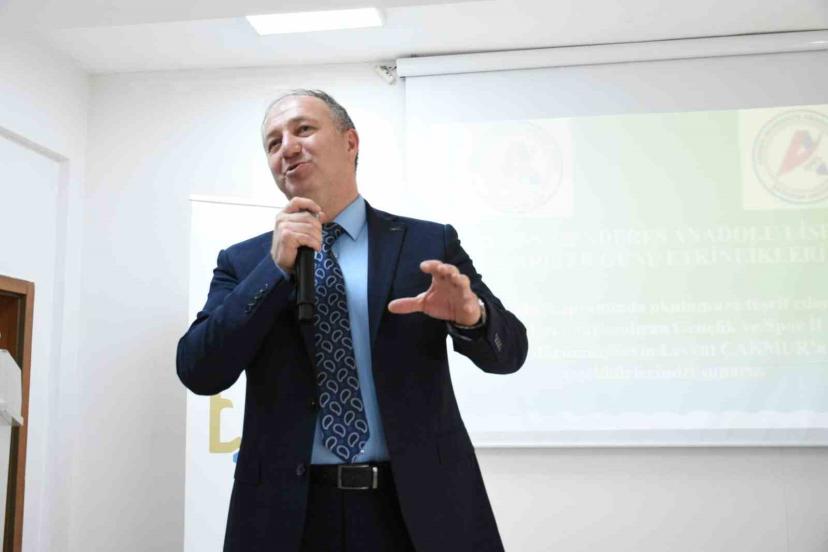Aziziye Gençlik Merkezi ile Adnan Menderes Anadolu Lisesi işbirliğiyle düzenlenen ’Tecrübe Paylaşım’ programında gençlerle sohbet eden ve tecrübelerini öğrencilere anlatan Çakmur, hayatta hep beden eğitimi öğretmeni olmak istediğini bunun da nasip olduğunu söyledi.