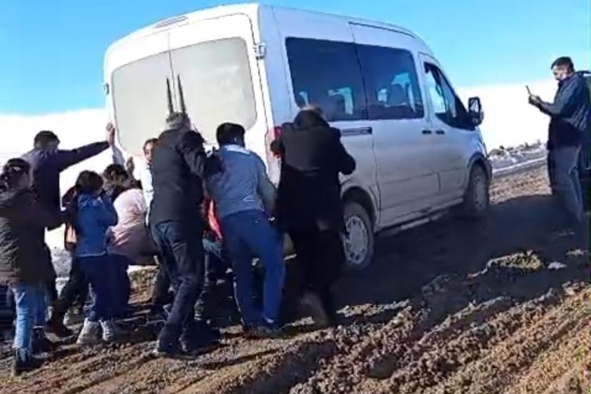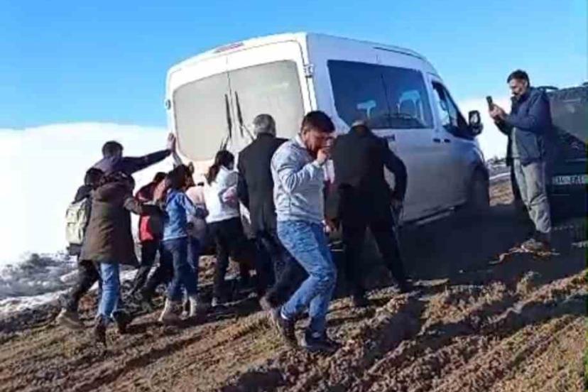 Van’ın Özalp ilçesine bağlı Aşağı Yorganlı Mahallesi’nde okula gitmek isteyen öğrenci ve öğretmenler, çamur içindeki yollar nedeniyle büyük zorluk yaşıyor.