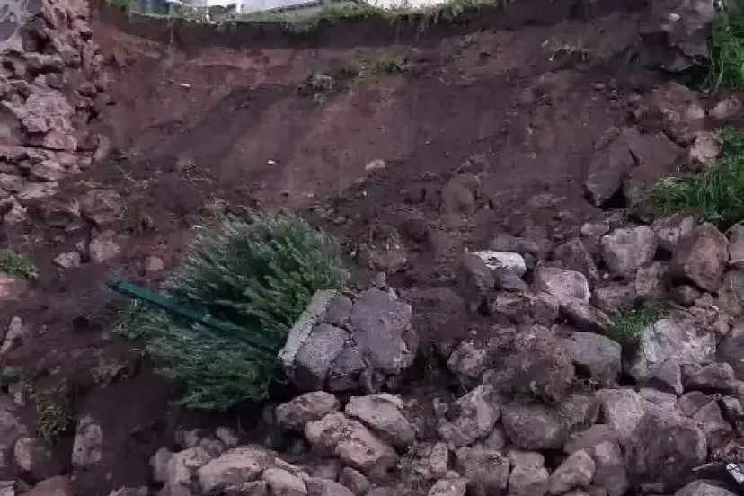 Çanakkale'de aşırı yağışlar nedeniyle istinat duvarı çöktü