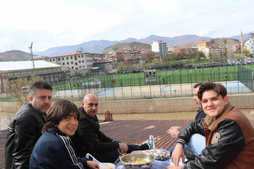Çatıda kaygana yiyerek maç izlediler