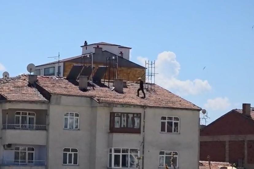 Çatıda tehlikeli çalışma, kameraya yansıdı