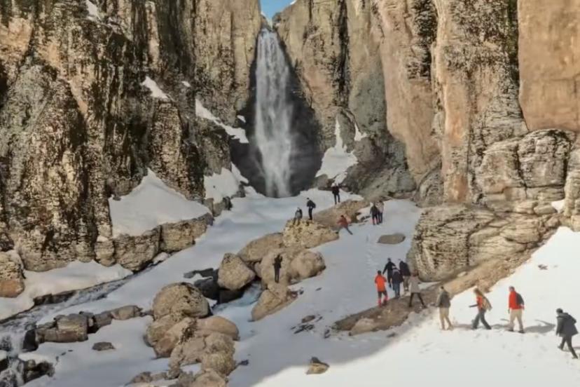 Bingöl’de bulunan ve karların erimeye başlamasıyla birlikte çoşan Çır Şelalesi, ziyaretçilerini ağırlıyor.