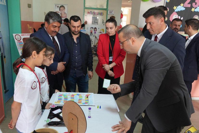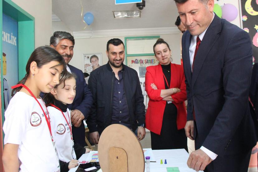 Öğrencilerin yıl boyunca hazırladıkları projelerin sergilendiği fuarda stantları tek tek gezen Kaymakam Ahmet Vezir Baycar ve beraberindeki protokol üyeleri, öğrencilerden projeleri hakkında bilgi aldı.