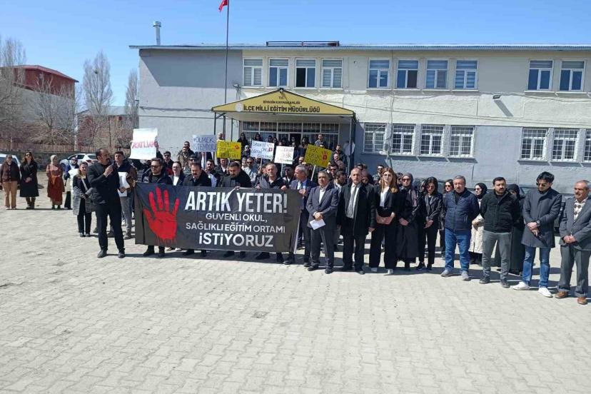 Diyadin İlçe Milli Eğitim Müdürlüğü önünde toplanan eğitimciler, taşıdıkları pankart ve dövizlerle eğitim kurumlarında artan şiddet olaylarına dikkat çekti. "Artık yeter! Güvenli okul, sağlıklı eğitim ortamı istiyoruz" yazılı pankart, eylemin ana mesajını oluşturdu.(İHA)Emrullah Karip