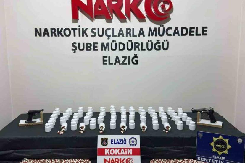 Elazığ İl Emniyet Müdürlüğü Narkotik ekiplerince düzenlenen uyuşturucu operasyonunda 802 gram kokain, çok sayıda sentetik ecza ve ruhsatsız silah ele geçirilirken, bir şüpheli tutuklandı.
