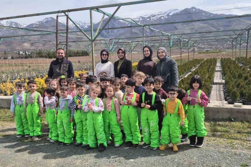 Elazığ’da minik öğrenciler fidanlıkta doğayla buluştu