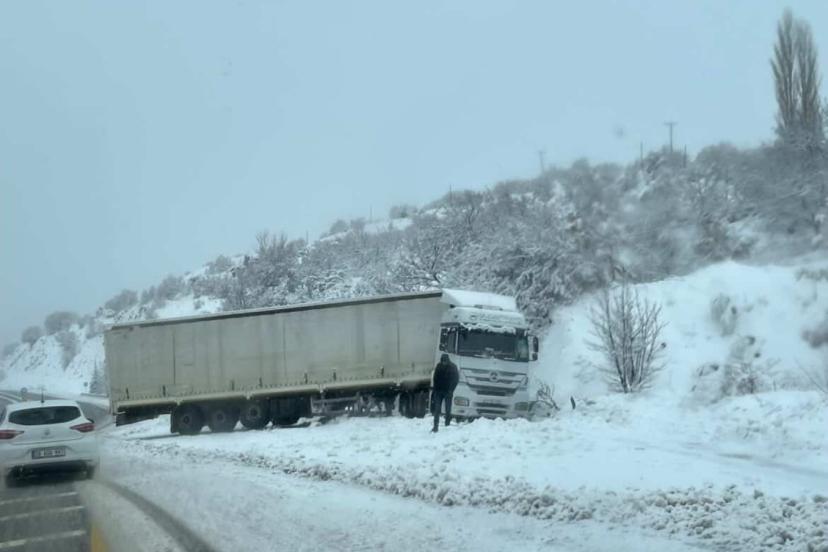 Meteorolojinin uyarı yaptığı Elazığ’da kar yağışı sabah saatlerinde etkili oldu. Bir anda bastıran kar, yolları ve kenti kısa sürede beyaza bürüdü. Bu çerçevede sürücüler zor anlar yaşadı. Elazığ- Malatya karayolunda da etkili olan kar yağışı sonrası bir tır, şarampole kayarak kara saplandı. Sürücünün karayolları ekiplerinden yardım istediği öğrenildi.