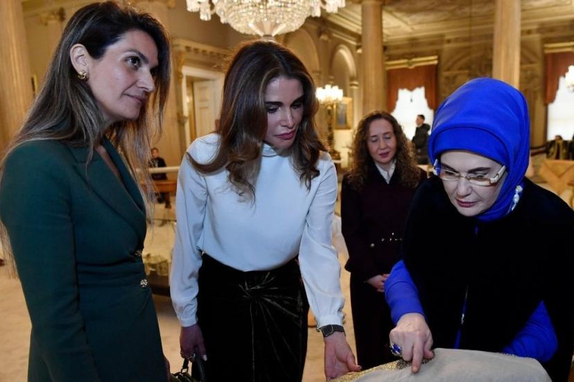 Cumhurbaşkanı Erdoğan'ın eşi Emine Erdoğan ise Ürdün Kraliçesi Rania Al Abdullah'ı Dolmabahçe Sarayı'nda ağırladı.