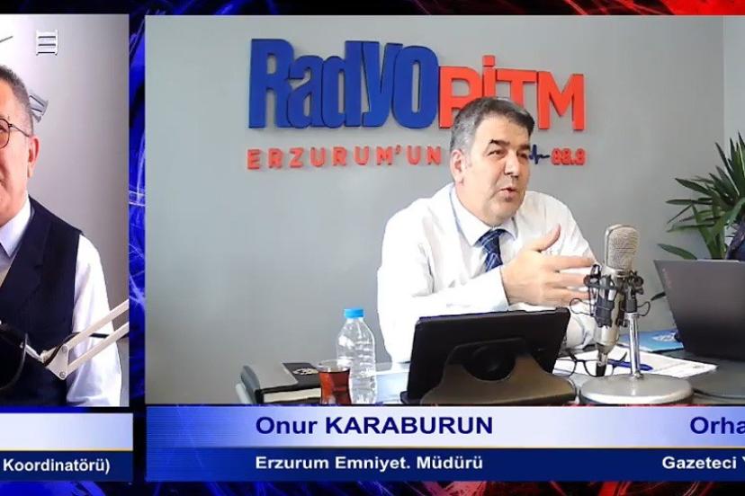 Erzurum Emniyet Müdürü Onur Karaburun, Radyo Ritim’de Gazeteciler Mesut Gülrek ve Orhan Bozkurt’un hazırlayıp sunduğu "Sesli ...