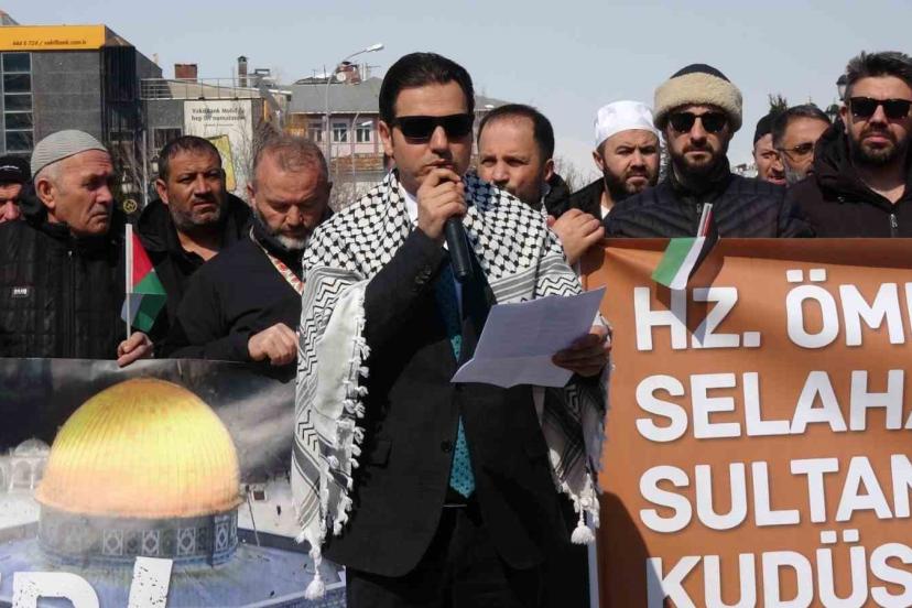 "Kudüs’ün ve Mescid-i Aksa’nın özgürlüğüne sahip çıkmak, mazlum Filistin halkının yanında olduğumuzu haykırmak için buradayız" diyen ESTP Başkanı Kavaz, "İslam coğrafyasının dört bir yanında, çocuklar tonlarca ağırlıktaki bombaların hedefi oluyor. Dün Bosna’da, Çeçenistan’da, Afganistan’da, Arakan’da, Suriye’de ve Irak’ta dökülen kan; bugün Sudan’da, Lübnan’da, Doğu Türkistan’da, Yemen’de, Gazze’de ve İran’da dökülmeye devam ediyor. Coğrafyalar değişiyor, takvimler değişiyor ancak ölenler hep aynı; masum çocuklar, kadınlar ve siviller. Fail belli, silahlar belli, bombaların üzerindeki imzalar belli. ABD ve İsrail menşeli bombalar şehirleri yerle bir ederken, bizler hâlâ büyük düşmanımız olan "parçalanmışlığı" besliyoruz. Emperyalist güçler İslam coğrafyasını adım adım işgal edip, çocuklarımızı hayattan koparırken; anne babalar evlatsız, evlatlar anne babasız kalırken, bizler enerjimizi ve birliğimizi mezhep kavgaları, etnik tartışmalar ve çekişmelerimizle tüketmeyelim" dedi.
